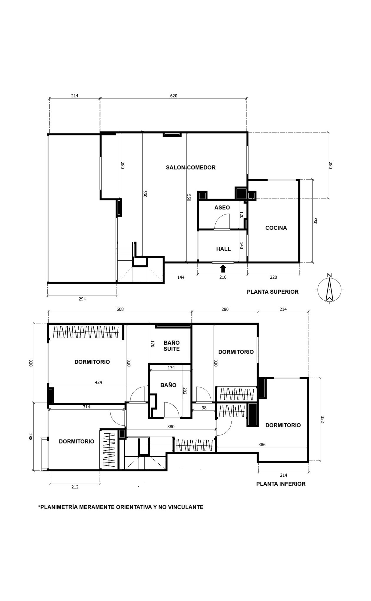 La vivienda dispone de 4 dormitorios, 2 baños completos y 1 aseo de cortesía distribuido en dos plantas.