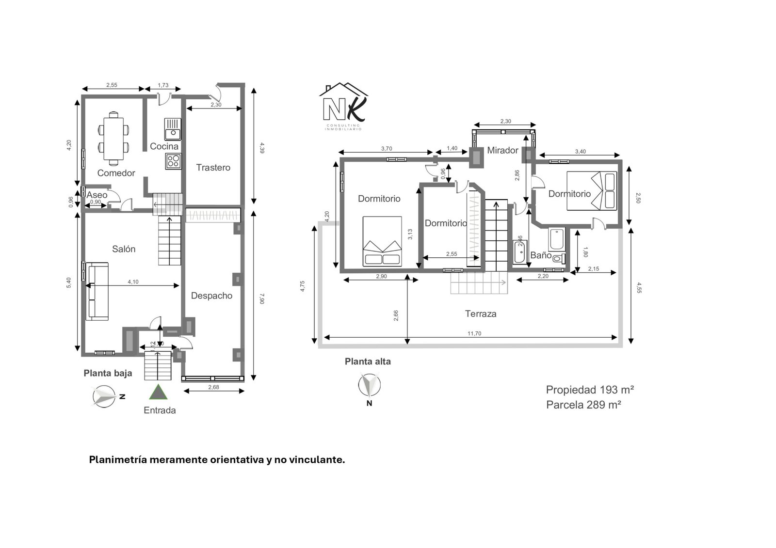 PLANTA ALTA: superficie de 50m2 (según catastro) con 3 dormitorios,1 baño completo, mirador y una terraza de 37m2 aproximadamente.